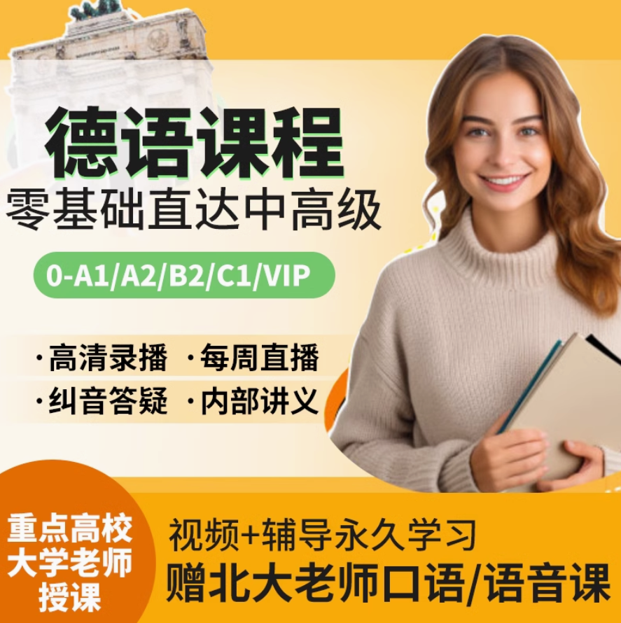 新求精德语自学入门零基础A1B2C1中高级水平翻译词汇语法视频网课